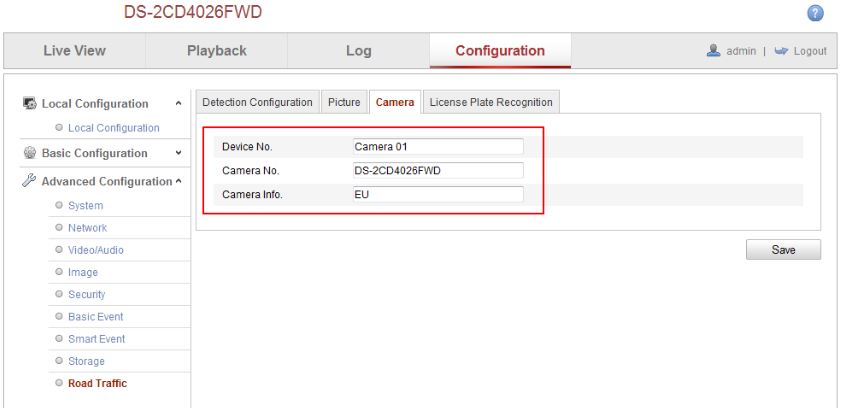 Step 3. Then go to Advanced Configuration > Road Traffic option. Select the detection type from the list. Vehicle Detection will be selectable.