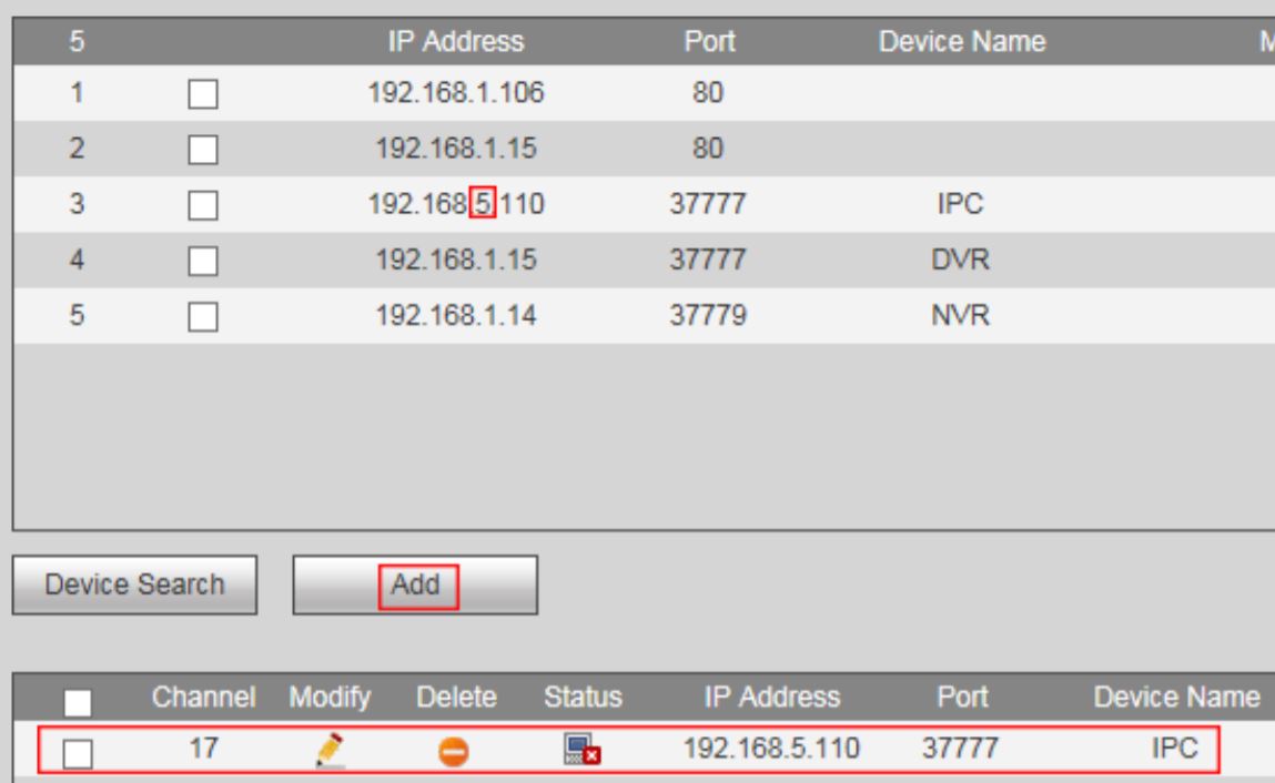 Go to “Remote Device” and do a “Device Search”. Scan the network for all Dahua CCTV equipment. Look for all of the cameras with a subnet matching port “2”. After checking off the cameras click “Add” this will add the cameras to the unit.