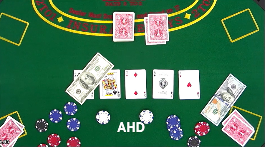 A casino table and dollar bills