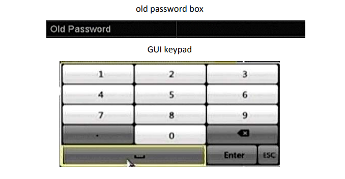 Step 5. Click the old password box and enter the current password using the GUI number pad, the default password of the cameras usually is 12345 (or put your old cameras’ password).