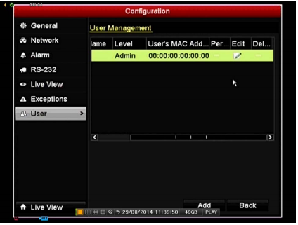 Step 3. Click on the user tab which is at the bottom of the left hand side options to display the user setup page as below.
