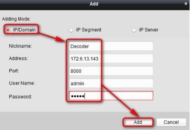 Step 4. Click Decoding Device, select the decoder and click Add to client to add it.