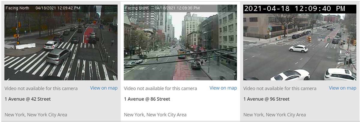 New York Traffic cameras: If you live in New York, check out this public website that lists hundreds of public security cameras. Additionally, just google your city followed by “live traffic cameras” and you should find a lot of cameras. For example search “Los Angeles live traffic cameras”, or “Miami lives traffic cameras”.