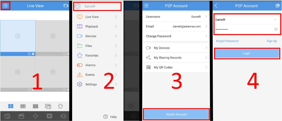 Step 6. If you are currently signed in to your account on the EZView phone app, you will need to sign out, then sign back in(with your new password) to view the live view. Follow the image below to do so: