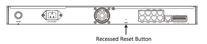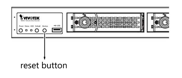 Step 1. The reset button on the Vivotek NVRs is located on the front or on the back of the NVR. Check your machine and locate the reset button. The pictures below show a few samples.