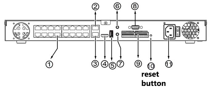 These NVR models manufactured by Vivitok come with a reset button (not all models are listed here, just a few models): NR8201, NR8301, ND8212W, ND8312, ND8321P, ND8322P, ND8422P, ND9322P, ND9322P-v2, ND9424P, ND9424P-v2, ND9441, ND9441P, ND9541, ND9541P.